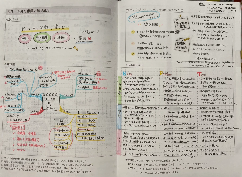 毎月続けている月の振り返りページ