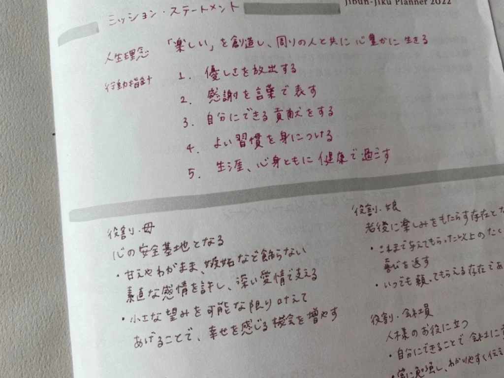 自分軸手帳部の中でこれが自分軸なんだと気づかせてもらって、少しずつ育てている、大切にしたいことを大切にできていることがとても楽しいと毎日感じているので、自分軸手帳部には本当に感謝しています。