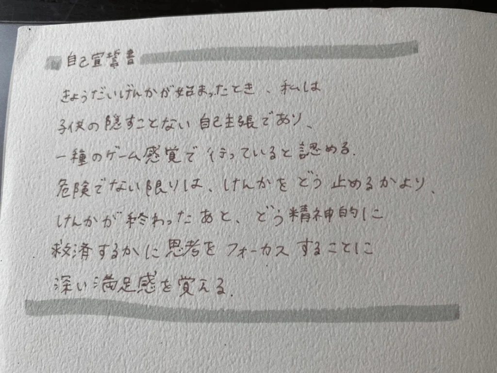 ミッションステートとともに作った自己宣誓書で自分が楽になりました。怒りたくないのに反射的に怒っていたので、「見守る」と決めて少しずつ子どもたちの様子を観察できるようになりました。