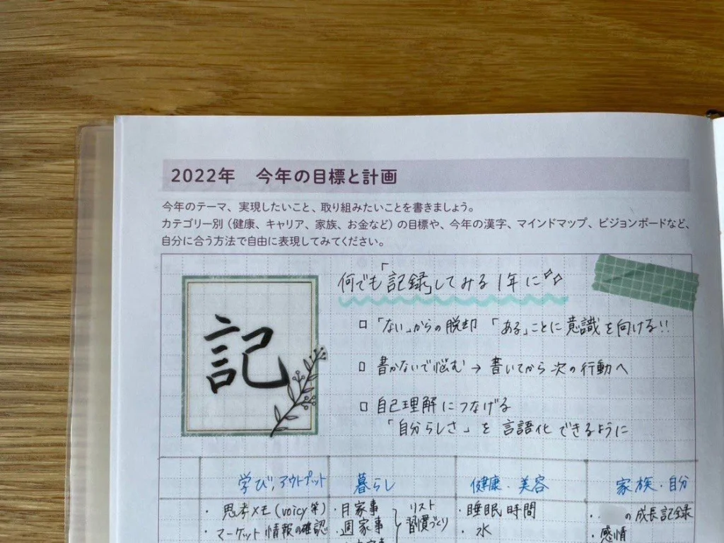 自分軸手帳を使い始めた直後に掲げた目標