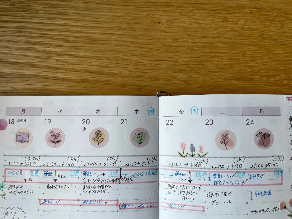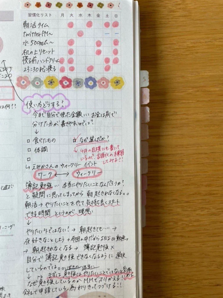 なかなか起きられなかったり、せっかく早起きしても勉強そっちのけで手帳タイムを優先してしまったり……自分の時間をあえて逃がしてしまうような行動を重ねる自分に気づきました。