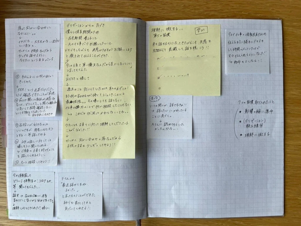 気軽に残せるからどんどん手帳の上にも行動の記録が積み重なって……そして気づきが次のヒントをくれる。むやみやたらに話しかけるのではなく、過去の経験を踏まえて新たな行動を決めることができました。