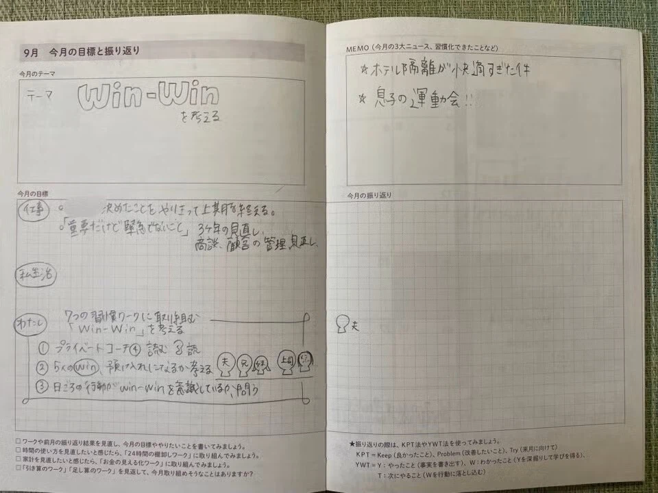 でも、こうして手帳に宣言してあると、ふとした瞬間に思い出すことができますよね。「人と逢えていないな」と気づき直したタイミングで、改めて月間目標に計画を落とし込んだりしながら、俯瞰した目で自分の人生の満足度を高める行動を積み重ねることができるように思います。