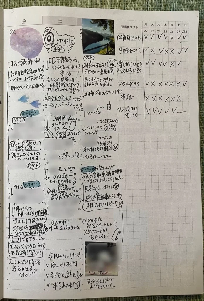 それから、未来ばかりでなく、過去を残すという意味でも効きます。私は2人の子どもを育てていますが、子育てって毎日がバタバタで、どんどん記憶が消えていくじゃないですか。でも、その瞬間は宝物で、残したい。だから、写真などもたくさん貼りながら、その瞬間の思い出を手帳に閉じ込めることも大切にしています。