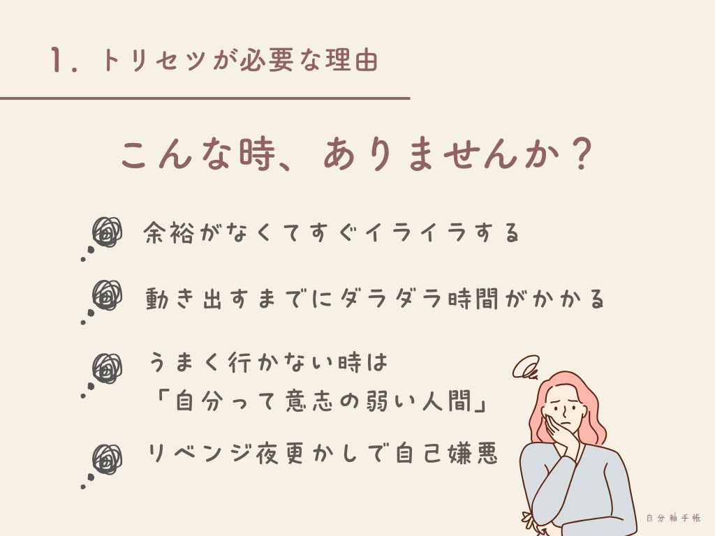 ――そんな時、自分のトリセツがあれば、「いい感じの自分」を取り戻しやすくなるはずです。