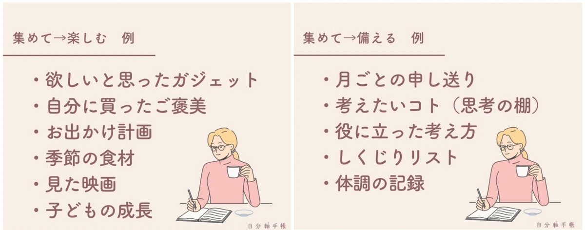 そういわれると、「自分にとって間違いなく価値ある情報を!」「自分軸につながっていると確信できる項目とは?」と、とても慎重になってしまうかもしれませんが……どうか肩の力を抜いてくださいね。